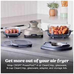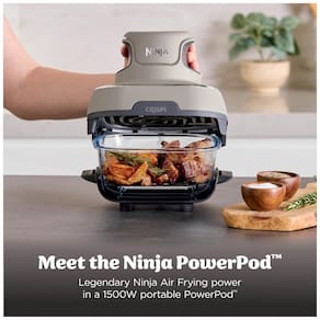 O Sistema de Cocção em Vidro Portátil Ninja Crispi é uma potência compacta que combina os 1500W de uma fritadeira a ar de tamanho completo em um design portátil. Inclui um pequeno recipiente de 6 copos e um maior de 3,78 litros CleanCrisp. Seja preparando refeições rápidas e individuais em apenas 7 minutos ou compartilhando petiscos crocantes em movimento, o Ninja Crispi torna tudo mais fácil. Projetado para cozinhar e armazenar alimentos sem produtos químicos tóxicos PFAS e PTFE. Todos os acessórios Crispi são seguros para lava-louças e empilháveis para limpeza e armazenamento fácil. Baseado na potência em comparação com o sistema Ninja AF100 TUDO EM UM. Inclui o PowerPod Ninja Crispi, recipientes CleanCrisp de 3,78 litros e 6 copos, e 2 tampas de armazenamento.