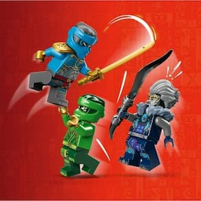 Este brinquedo ninja também inclui 3 minifiguras: Lloyd com uma katana, Nya com uma katana e Cinder com uma espada para permitir que seu filho represente emocionantes aventuras ninja