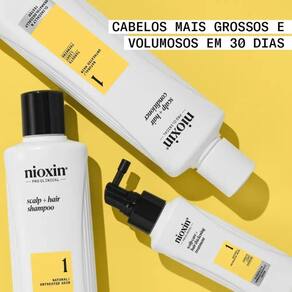 Nioxin System 1 - Condicionador Contra Afinamento Capilar 1L Revitalização e Fortalecimento: Este condicionador foi especialmente formulado para revitalizar e fortalecer os cabelos finos, deixando-os com uma aparência mais volumosa e saudável. Sua fórmula única nutre profundamente os fios, restaurando sua saúde e beleza natural. Benefícios Inigualáveis: