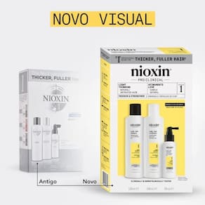Nioxin System 1 Kit - Sh 150ml + Cond 150ml + Leave-in 50ml Vida nova aos seus cabelos finos com o Kit Nioxin Volume Thinning Sistema 1 - o trio que transforma cabelos ralos em fios cheios de volume e força Desenvolvido por especialistas em tricologia, este conjunto revolucionário combina shampoo, condicionador e tônico com tecnologia patenteada de cafeína e peptídeos que agem desde a raiz: limpam profundamente sem ressecar, fortalecem cada fio e estimulam o couro cabeludo para um visual até 82% mais volumoso. O segredo dos salões premium para quem sonha com cabelos aparentemente mais densos e cheios de vida, agora em um sistema completo que você usa em casa com resultados visíveis em poucas semanas