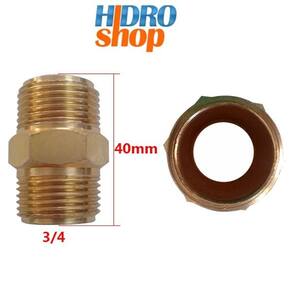 Niple latão 3/4' x 40 mm com sextavado de 17mm rosca macho macho de 3/4