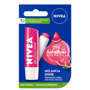 Hidratante labial. NIVEA Shine oferece cuidado e proteção por 24 horas, hidratando e proporcionando brilho delicado aos lábios.
