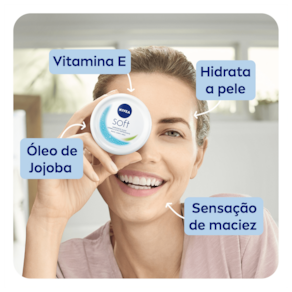 Creme hidratante para corpo, mãos e rosto, ideal para todos os tipos de pele. NIVEA Soft suaviza a textura da pele, sensação de maciez prolongada e frescor.