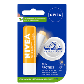 Protetor solar hidratante labial. NIVEA Sun Protect FPS 30 é perfeito para proteger contra os efeitos dos raios solares e proporcionar hidratação prolongada.