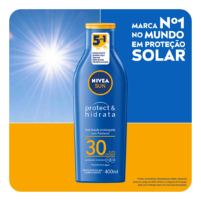 O Protetor Solar NIVEA Sun Protect & Hidrata FPS30 possui formulação com Panthenol, garantindo a hidratação da pele enquanto forma uma barreira de proteção contra danos causados pelos agentes externos. Além disso, é resistente à água, conta com uma textura confortável, que previne o envelhecimento e deixa seu corpo com um toque sequinho e macio.