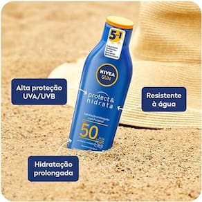 Para que serve o Protetor Solar Nivea Protect & Hidrata? Não deixa a pele oleosa, com sua fórmula oil free o protetor solar é rapidamente absorvido pelo corpo. Enriquecido com Panthenol, hidrata e protege por mais tempo.