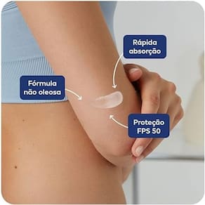 Benefícios e diferenciais - FPS 50 garante muito alta proteção solar - Resistente à água - Previne o envelhecimento da pele