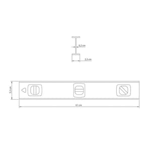 Para ter mais praticidade e qualidade no dia a dia do seu trabalho, adquira sempre os produtos certos. Com o Nível 24 polegadas Tramontina em Alumínio Anodizado com Duas Ampolas você terá uma ferramenta muito mais resistente, isso porque ele possui perfil em "I" e é produzido com aço anodizado. Além disso, o nível possui duas ampolas que facilitam no momento da medição, otimizando o trabalho do profissional. Por isso, adicione agora mesmo esse instrumento a sua caixa de ferramentas. Ampolas de 360º que permitem leitura precisa.Estrutura super resistente anodizada e em perfil "I".Proteção plástica nas extremidades.Visores em policarbonato transparente para proteção das bolhas.Com três ampolas (0º, 45º e 90º).Todas as ferramentas de medição são inspecionadas e verificadas para manter um alto nível de precisão.As ferramentas são submetidas a testes de aplicação prática para garantir sua resistência em uso intenso.As ferramentas são produzidas e testadas conforme normas específicas. Observações Use óculos, luvas e outros equipamentos de proteção de acordo com a tarefa a ser executada. Mantenha a ferramenta sempre limpa para um melhor agarre, pois usá-la suja com graxa ou óleo pode causar acidentes. Armazene em local limpo e seco. Características Gerais EAN13 7891114000443 DUN14 17891114000440 NCM 9031.80.99 Peso Líquido 0,3600 kg. Peso Bruto 0,3600 kg. Metragem 0,000853 m³. Dimensões Embalagem (Compr. X Larg. X Alt.) 620x 55x 25 mm. Dimensões Produto (Compr. X Larg. X Alt.) 610x 23x 53 mm. Dimensão Extra A 53,0 mm. Dimensão Extra B 610,0 mm. Dimensão Extra C 23,0 mm. Dimensão Extra D 2,0 mm.