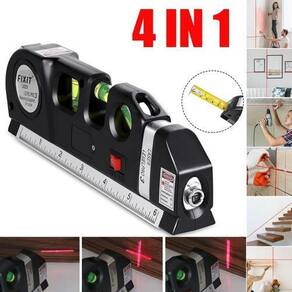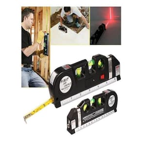 Laser com interruptor, base com régua em alumínio de 6 polegadas e trena de aço de 2,5 metros.