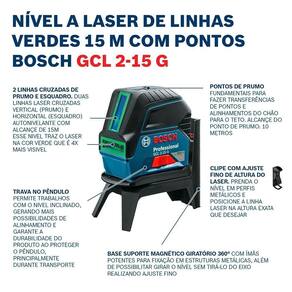 -laser combinado gcl 2-15 g professional; -visibilidade quatro vezes melhor graças às linhas laser verdes.