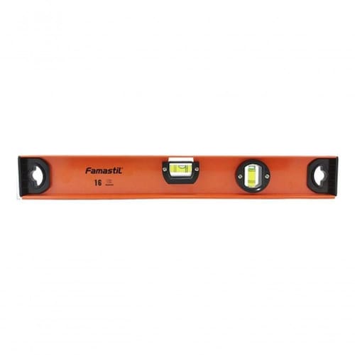 Nível De Alumínio Magnético 16 - Famastil Nível de Alumínio Magnético 10 - Famastil O Nível de Alumínio Famastil possui bolhas de plástico, que não quebram. Esta ferramenta assegura que o piso e outras superfícies estejam alinhados horizontalmente. Possui ponteira plástica nas extremidades e as bolhas são calibradas. Dimensões: 25cm (C) x 5,5cm (A) x 2,5cm (L) Informações Técnicas: Nível em alumínio magnético Ponteira plástica nas extremidades; Acabamento em tintura epóxi; Base imantada; Bolhas de plástico, não quebram. Com 2 Bolhas Tamanho: 10 Cor: Laranja Material: Alumínio e ponteira plástica Marca: Famastil 10'.