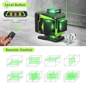 - ?Ampla aplicação? O autonivelamento a laser de linha cruzada verde pode ser alternado individualmente através de botão ou controle remoto. O nível a laser 360 autonivelante equipado com suporte magnético, mini tripé, base de elevação e adaptador de 3/20.3 cm, que expande o uso da ferramenta. Pode ser anexado a tripés, azulejos, adesivos de parede e tetos.