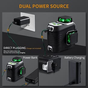 - ?Dois pacotes de baterias recarregáveis de 4000 mAh?: O laser de linha Firecore 360 emprega duas baterias de íons de lítio de 4000 mAh de grande capacidade e oferece até 14 horas ou mais de tempo de funcionamento. A bateria de íons de lítio vem com uma porta de carregamento tipo C que pode ser carregada separadamente. 3 indicadores de bateria na bateria permitem que os usuários saibam o volume atual da bateria e a proteção de carregamento ajuda a evitar sobrecarga.