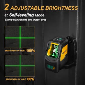 - Ângulo de expansão e feixe verde: o feixe vertical cobre um ângulo mais amplo - um ângulo de expansão projeta facilmente uma linha vertical do chão ao teto. O laser verde é 3 vezes mais brilhante do que o laser vermelho com a mesma fonte de luz e oferece brilho máximo do laser verde de até 30 metros com alta precisão; produto a laser Classe II, saída máxima de laser < 1 mW