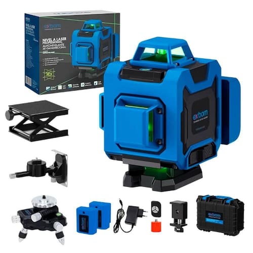 Modelo: Nível a Laser 16 Linhas 4D Alcance Efetivo: Até 30 metros Fonte de Luz: Sharp 515 nm (laser verde) Bateria: 2x baterias de lítio recarregáveis (2400mAh) Controle: Infravermelho Precisão: 1mm a cada 7 metros Proteção: IP54 (resistente a respingos de água) Alimentação: Bivolt com entrada USB Tipo-C (5V) Potência de Saída: 5MW Material: Alumínio e Macromolécula ABS Acessórios de Suporte: Plataforma elevatória, suporte magnético articulado e tripé para solo