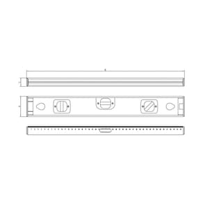 Ampolas de 360 que permitem leitura precisa. Estrutura super resistente de alumínio em perfil I. Visores em policarbonato transparente para proteção das bolhas. Base magnética em forma de fita com a função de fixação em superfícies metálicas. Régua graduada na parte superior do produto. Proteção plástica nas extremidades. Com 3 ampolas (0, 45 e 90). Todas as ferramentas de medição são inspecionadas e verificadas para manter um alto nível de precisão. As ferramentas são submetidas a testes de aplicação prática para garantir sua resistência em uso intenso. As ferramentas são produzidas e testadas conforme normas específicas.
