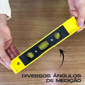 Nível Torpedo 228mm 9 Pol com Base Magnética De 3 Bolhas Garanta medições precisas com praticidade e durabilidade O Nível Torpedo com Base Magnética 228mm é ideal para profissionais da construção civil, instaladores, marceneiros e também para uso doméstico. Características principais: Tamanho compacto: Com 228 mm, é perfeito para espaços reduzidos e fácil de transportar. Base magnética: Fixa com segurança em superfícies metálicas, liberando as mãos para trabalhar com mais agilidade. Alta precisão: Possui 3 bolhas horizontal, vertical e/ou 45 para diferentes tipos de nivelamento. Corpo resistente: Fabricado em material durável. Visualização facilitada: Bolhas com líquido para leitura rápida.