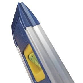 Este dispositivo é um nível que permite realizar nivelamento tanto horizontal quanto vertical. Ele é equipado com três bolhas para auxiliar nessas operações: uma para nivelamento, outra para prumo e uma terceira para ângulos de 45 graus. Além disso, possui uma base magnética que permite sua fixação em estruturas metálicas, facilitando seu uso em diferentes ambientes. Também possui uma ranhura em forma de V, ideal para trabalhos em tubulações.