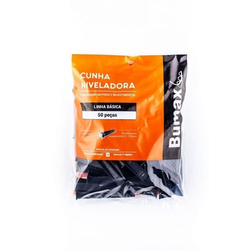 INFORMAÇÕES TÉCNICAS- Aplicação mais confortável- Com ponteira para espaçamentos: 1,0 mm | 2,0 mm | 3,0 mm.DIFERENCIAIS BUMAX- Método de instalação: Alicate ou manual- Espaçador translúcido com tamanho que facilita a aplicação e ponto de ruptura para evitar rebarbas na remoçãoCOMO APLICAR1. Adicione um Nivelador Espaçador a aproximadamente 5 cm de cada extremidade dos pisos.2. Assente o próximo revestimento e então encaixe as Cunhas na abertura do Espaçador Nivelador. (O uso de Alicate é opcional).3. Após a secagem da argamassa, rompa as peças batendo lateralmente com martelo de borracha ou botina.4. Após remoção , descarte os Niveladores Espaçadores quebrados e recolha as Cunhas para futuras utilizações.