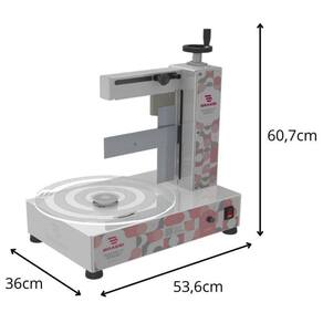 Características Técnicas: Prato giratório de 360 mm ideal para bolos de 10 cm até 30 cm de diâmetro Tabuleiro de base quadrada de até 33 cm Adequado para coberturas e cremes como chantilly, butter cream, ganache e creme de confeiteiro Controle de 5 níveis de velocidades Baixo nível de ruído Prato giratório de vidro temperado removível, fácil de limpar e compatível com lava-louças Marcação de diâmetro para o tamanho de bolo no prato de vidro temperado Fácil acesso para decoração das coberturas utilizando espátulas de diversos formatos e acabamentos Consumo: 0,03 kWh