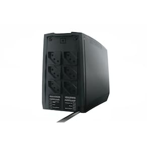 Quantidade de tomadas: 3 tomadas com energia protegida (sem função nobreak), 3 tomadas com energia protegidas e ininterrupta (com função nobreak) Frequência de rede: 50hz ou 60hz(+/-5%) com detecção automática Frequência de inversor: +/-1% Bateria(s): 1 bateria interna de 12v 7ah Autonomia média: 30 minutos Tensão de operação da bateria: 12v Fator de potência saída: 0,7 Tempo de transferência: 1 ms Forma da onda no inversor: semi-senoidal (retangular pwm) Circuito desmagnetizador: sim Rendimento em rede (com meia carga): 98% Rendimento em inversor (com meia carga): 80% Faixa de entrada 110v/115v/127v: 99v-138v (ca) Faixa de entrada 220v: 189v-264v (ca) Tolerância para tensão de saída em inversor: tensão nominal de saída +/-5% Proteção contra sobrecarga, subtensão e sobretensão: sim Proteção externa contra curto-circuito: sim Comprimento do cabo de alimentação: 1,25m Supressor de transientes para rede elétrica: 150vrms, 35j, 2500a (de acordo com a a ansi (c62.41 categoria a).