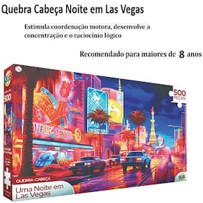 Quebra Cabeça Uma Noite em Las Vegas 500 Peças Brinquedo educativo divertido e perfeito para o aprendizado Cada peça deste puzzle te leva a visão detalhada e autêntica