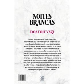 Em Noites Brancas, Fiódor Dostoiévski apresenta uma narrativa breve e delicada, marcada por lirismo e profunda sensibilidade. Ambientada em São Petersburgo durante as célebres noites em que o sol quase não se põe, a obra convida o leitor a mergulhar em reflexões sobre a solidão, os sonhos e a intensidade dos sentimentos humanos. Com sua escrita envolvente e poética, Dostoiévski revela um lado mais intimista de sua genialidade literária, oferecendo ao público uma história atemporal que permanece emocionante e atual. Uma leitura essencial para admiradores de clássicos e para todos aqueles que buscam a beleza da literatura em sua forma mais pura. Marca: Não Informado
