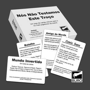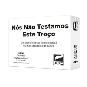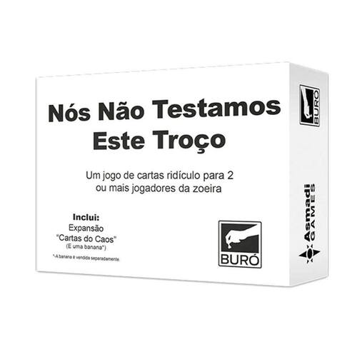 Nós Não Testamos Este Troço NTT Jogo de tabuleiro Buró Bem vindos a a Playmat, estamos situados em Porto Alegre, e é aqui onde os amantes de TCG, animes, filmes e tudo que a cultura geek oferece se encontram.Nosso catálogo contém muita variedade entre action figures, funko pops, Pokemon TCG, Yugioh TCG, Magic TCG e artigos Geek e Nerd. Qualquer duvida é só nos contatar pelo chat que responderemos dentro de alguns minutos. Todos compram duas cartas. Na sua vez, compre outra carta e escolha uma delas pra jogar, seguindo o que a carta escolhida manda você fazer. Se uma carta fizer com que você perca. Você perde Se uma carta faz com que você ganhe, você ganha e logicamente, você não ganha se tiver perdido Simples assim... Ou não NTT é um jogo completamente absurdo e por isso, ideal para jogar em casa com a familia ou com seus amigos no bar.Homologação Inmetro: CE-BRI/IQB 005923 53374/19-038