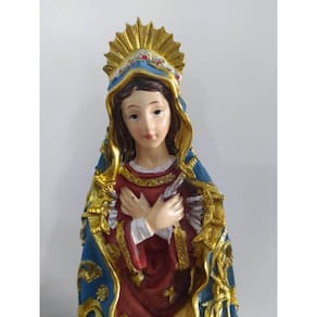 A imagem de Nossa Senhora das Dores apresenta-nos uma simbologia clara e bela sobre os sofrimentos pelos quais a Virgem Maria passou. Os sofrimentos da Mãe de Jesus a tornam uma grande intercessora diante de Deus em nosso favor. Foi num momento de sofrimento, durante a crucificação de Jesus, que o Mestre nos entregou sua mãe como 'Nossa Mãe'. Portanto, as Dores de Nossa Senhora são importantes e a tornam também 'Co-redentora' da humanidade. Características da imagem: Altura: 14cm Largura: 7cm Comprimento: 6cm Peso: 118g Ficha técnica - Ambientes: Interior - Largura: 7cm - Com base: Sim