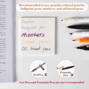 Observação: como as notas adesivas transparentes são feitas de material à prova d'água, recomendamos que você use canetas à base de óleo (canetas esferográficas, marcadores etc.) ou lápis em vez de canetas à base de água para escrever ou desenhar para uma melhor experiência.