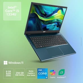 12 MB Intel Smart CacheEleve sua produtividade com o Notebook Acer, uma máquina projetada para o seu dia a dia. Equipado com o processador Intel Core i5-1334U de 13 Geração e 8GB de RAM DDR5, ele garante desempenho rápido e eficiente. Armazene seus arquivos no veloz SSD de 256GB e desfrute de imagens nítidas na tela IPS WUXGA de 15.3 polegadas, ideal para trabalho e lazer. Já com Windows 11 Home, você terá a experiência mais moderna. O Acer oferece tecnologia de ponta para suas tarefas Performance e visual em um só notebook.