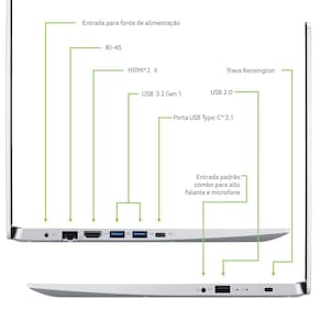 Notebook Acer Aspire 5 A515-45-R6KH AMD Ryzen 3 Windows 11 Home 8GB 256GB SSD 15,6` Full HD