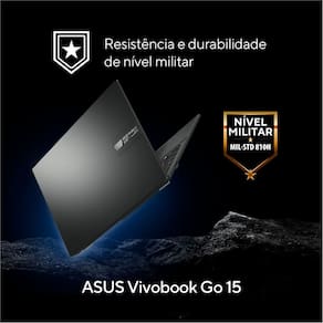 Sim. O Vivobook Go 15 possui certificação de nível militar US MIL-STD 810H, tendo passado por rigorosos testes de durabilidade que atestam sua resistência superior a impactos cotidianos em comparação a notebooks comuns.