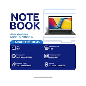 Notebook E1504FA-NJ1364W Vivobook Go Ryzen 3 W11 4GB 128GB SSD 15,6 Polegadas Asus