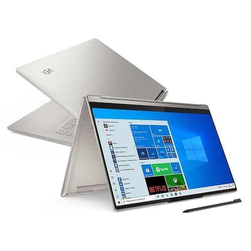 OLenovo Yoga 9i está equipado com prática porta de privacidade da webcam. Quando não estiver em uma chamada de vídeo ou gravando algo, basta deslizá-la. Faça vídeo-conferências em alta-definição com a câmera HD-720p. Nitidez e alta qualidade de som com certificação Dolby Atmos com alto-falante tridimensional. Perfeito para produtividade, criatividade e entretenimento. Com até 17 horas de duração de bateria o Yoga 9i permite que você trabalhe, jogue e navegue pela internet por muito mais tempo. Além de possuir a tecnologia de carregamento rápido. Acesse seu notebook em menos de dois segundos com o leitor de impressão digital. Plataforma Intel EVO Selo de certificação de qualidade em requisitos como desempenho, autonomia de bateria, conectividade e recursos de áudio e vídeo, para uma experiência excepcional. Com Placa de Vídeo Intel Iris Xe trabalhe com mais velocidade em imagens de alta resolução, obtenha mais dos seus vídeos, e ganhe desempenho ao executar diversas tarefas ao mesmo tempo, com auxílio da Inteligência Artificial com baixo consumo de bateria. Guarde e carregue no chassis a caneta digitalizadora, agora mais leve e precisa.