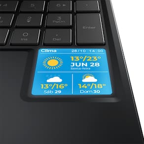 Minitela integrada para lembretes, notificações do WhatsApp, mensagens, previsão do tempo, imagens, GIFs animados e atalhos