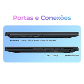 A conectividade também se destaca: são quatro portas USB (incluindo uma USB-C), Wi-Fi 5 com slot M.2 substituível, HDMI e entrada/saída de áudio,