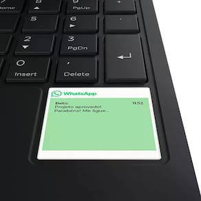 Um dos grandes diferenciais do modelo é a exclusiva Minitela, um display secundário de 1,54 que exibe em tempo real notificações do WhatsApp, lembretes, status do dispositivo, previsão do tempo e GIFs sem precisar alternar de tela. Isso significa mais praticidade, produtividade e foco durante o uso.