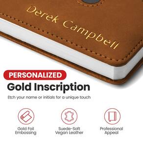 Apresentamos nosso caderno de couro personalizado, uma mistura impressionante de sofisticação, funcionalidade e personalização. Este diário de couro premium permite que você faça uma declaração ousada com seu nome elegantemente gravado na capa dura em folha metálica dourada. Com um simples clique, você tem o poder de personalizar seu caderno de trabalho, elaborando um diário verdadeiramente distinto e personalizado que reflete sua individualidade. Projetado para conveniência - este diário encadernado em couro apresenta um bolso cuidadosamente trabalhado e um design de trava segura. O design de bolso é perfeito para manter notas soltas, cartões de visita ou até mesmo itens essenciais como o seu telefone à mão. A fechadura garante que seus preciosos pensamentos e notas permaneçam protegidos. Nosso caderno A5 apresenta um acabamento luxuoso semelhante a camurça. A capa de couro vegano suave e flexível convida seus dedos a explorar sua textura macia, adicionando um toque de indulgência à sua experiência de escrita. É um diário de viagem que atrai homens e mulheres, exalando sofisticação e requinte em cada página. Abrace infinitas possibilidades com este caderno forrado versátil. Seja capturando seus pensamentos, esboçando suas ideias, anotando ou mantendo um diário pessoal, este caderno de reuniões se adapta facilmente às suas necessidades criativas. É a companhia perfeita para escritores, artistas, executivos e profissionais que buscam se expressar com estilo. Você está procurando uma ideia de presente notável? Nosso diário de escrita é a escolha perfeita. Combinando praticidade com elegância, é um presente atencioso para aniversários, aniversários ou qualquer ocasião especial. Seus entes queridos ficarão cativados pelo toque personalizado. Entregue-se ao fascínio de nossos cadernos personalizáveis, onde o luxo encontra a expressão pessoal. Liberte sua criatividade em um caderno de capa dura que é exclusivamente seu. - Seu caderno personalizado: faça uma declaração com a personalização em relevo dourado para o seu nome, infundindo um ar de sofisticação neste diário exclusivo encadernado em couro. O caderno de viagem se torna uma tela de suas preferências, clique em "Personalizar agora" para começar. Faça uma declaração ousada e adicione um toque de elegância incomparável ao seu caderno hoje. - Design conveniente de bolso e trava: mantenha-se organizado em movimento com um bolso prático, perfeito para armazenar notas soltas, cartões de visita ou outros itens essenciais. Ele também vem com um cadeado para manter as páginas do diário de viagem seguras. - Couro vegano macio de camurça: mergulhe na sensação luxuosa deste diário para homens e mulheres, com um acabamento de camurça suave que oferece uma sensação tátil e sofisticada que eleva sua experiência de escrita. - Infinitas possibilidades: seja para diários, esboços, anotações ou um diário para escrever, este caderno versátil forrado A5 se adapta às suas necessidades criativas, tornando-o um presente perfeito para escritores, artistas, executivos e profissionais. - Presente memorável: Impressione seus entes queridos com um presente personalizado que combina praticidade e estilo. Este caderno de couro personalizado é um presente atencioso para aniversários, aniversários ou qualquer ocasião especial. Escolha entre 8 cores: azul, azul celeste, preto, azul tempestade, marrom, vermelho, cinza e marrom.