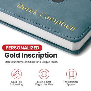 Apresentamos nosso caderno de couro personalizado, uma mistura impressionante de sofisticação, funcionalidade e personalização. Este diário de couro premium permite que você faça uma declaração ousada com seu nome elegantemente gravado na capa dura em folha metálica dourada. Com um simples clique, você tem o poder de personalizar seu caderno de trabalho, elaborando um diário verdadeiramente distinto e personalizado que reflete sua individualidade. Projetado para conveniência - este diário encadernado em couro apresenta um bolso cuidadosamente trabalhado e um design de trava segura. O design de bolso é perfeito para manter notas soltas, cartões de visita ou até mesmo itens essenciais como o seu telefone à mão. A fechadura garante que seus preciosos pensamentos e notas permaneçam protegidos. Nosso caderno A5 apresenta um acabamento luxuoso semelhante a camurça. A capa de couro vegano suave e flexível convida seus dedos a explorar sua textura macia, adicionando um toque de indulgência à sua experiência de escrita. É um diário de viagem que atrai homens e mulheres, exalando sofisticação e requinte em cada página. Abrace infinitas possibilidades com este caderno forrado versátil. Seja capturando seus pensamentos, esboçando suas ideias, anotando ou mantendo um diário pessoal, este caderno de reuniões se adapta facilmente às suas necessidades criativas. É a companhia perfeita para escritores, artistas, executivos e profissionais que buscam se expressar com estilo. Você está procurando uma ideia de presente notável? Nosso diário de escrita é a escolha perfeita. Combinando praticidade com elegância, é um presente atencioso para aniversários, aniversários ou qualquer ocasião especial. Seus entes queridos ficarão cativados pelo toque personalizado. Entregue-se ao fascínio de nossos cadernos personalizáveis, onde o luxo encontra a expressão pessoal. Liberte sua criatividade em um caderno de capa dura que é exclusivamente seu. - Seu caderno personalizado: faça uma declaração com a personalização em relevo dourado para o seu nome, infundindo um ar de sofisticação neste diário exclusivo encadernado em couro. O caderno de viagem se torna uma tela de suas preferências, clique em "Personalizar agora" para começar. Faça uma declaração ousada e adicione um toque de elegância incomparável ao seu caderno hoje. - Design conveniente de bolso e trava: mantenha-se organizado em movimento com um bolso prático, perfeito para armazenar notas soltas, cartões de visita ou outros itens essenciais. Ele também vem com um cadeado para manter as páginas do diário de viagem seguras. - Couro vegano macio de camurça: mergulhe na sensação luxuosa deste diário para homens e mulheres, com um acabamento de camurça suave que oferece uma sensação tátil e sofisticada que eleva sua experiência de escrita. - Infinitas possibilidades: seja para diários, esboços, anotações ou um diário para escrever, este caderno versátil forrado A5 se adapta às suas necessidades criativas, tornando-o um presente perfeito para escritores, artistas, executivos e profissionais. - Presente memorável: Impressione seus entes queridos com um presente personalizado que combina praticidade e estilo. Este caderno de couro personalizado é um presente atencioso para aniversários, aniversários ou qualquer ocasião especial. Escolha entre 8 cores: azul, azul celeste, preto, azul tempestade, marrom, vermelho, cinza e marrom.