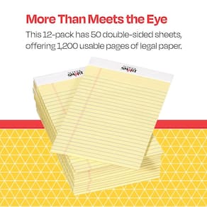 School Smart Junior Legal Pad, 12 x 20 cm, 50 folhas cada, canário, pacote com 12