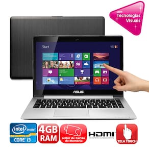 Notebook Touch Asus VivoBook S400CA-CA099HBR com Intel® Core™ i3-2365M, 4GB, 500GB, Leitor de Cartões, HDMI, Wireless, LED 14" e Windows 8