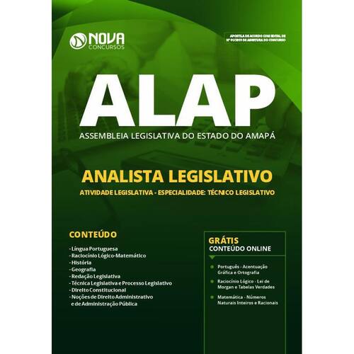 A Apostila para Analista Legislativo: Técnico Legislativo do concurso ALAP 2019 foi rigorosamente elaborada conforme o último edital publicado, o que torna o seu conteúdo completo e atualizado.