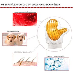 - Os pelos aderem à luva pelo magnetismo, tornando mais fácil pegar e jogar fora o pelo do seu animal de estimação.