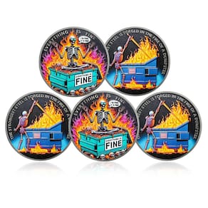 - Grin Through the Chaos: O pacote contém 5 moedas de fogo de lixeira. Nosso token de fogo de lixeira simboliza resiliência e força. Os fogos de lixeira da vida — aqueles momentos em que tudo desmorona — são inevitáveis, mas esta moeda nos lembra de rir através do caos. Quando as coisas dão errado, humor e força interior nos ajudam a superar. Seja uma montanha de papelada ou a rotina diária, esta moeda incentiva você a sorrir, abraçar o fogo, encontrar a diversão e continuar