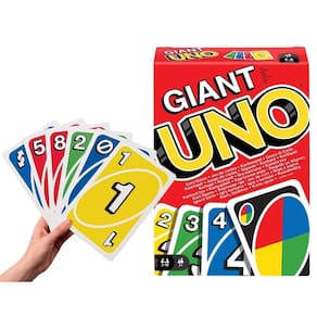 É o jogo de combinar cartas que você conhece, agora três vezes maior. Ótimo para a praia ou piscina Os jogadores ainda correm para se livrar de todas as cartas, combinando uma carta na mão com a carta de cima na pilha de descarte. Quando você tiver apenas uma carta na mão, não esqueça de gritar UNO como um gigante.