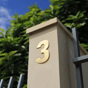 Números residenciais de altíssima qualidade material: Acrílico cor: Dourado Pintura eletrostática Altura: 13 cm espessura: 3 mm fixado com dupla face 3 m temos disponíveis: 1, 2, 3, 4, 5, 6, 7, 8, 9, A, B, C