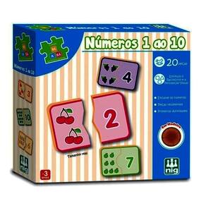 O jogo consiste encaixar os números nas quantidades corretas de frutas. Estimula o raciocínio e percepção visual. É excelente para as primeiras atividades das crianças. Feito em madeira , é resistente e muito bonito. As peças são de aproximadamente 5x5 cms. Fabricado pela Nig, tradicional fabricante de brinquedos brasileiros de qualidade. São 20 peças no total. Esta indicado a partir de 3 anos. Aprovado pelo Inmetro Ce Bri Iqb 446 Nm 300 2002. Ean: 7896200704151