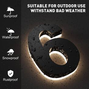 LLtronation Números de casa retroiluminados de 15 cm para o exterior, aço inoxidável, número de endereço residencial iluminado por LED, placas de endereço modernas iluminadas para casas, restaurante, - Números de casa de LED modernos - uma fusão de estética e durabilidade atemporal. O design clássico preto fosco e altamente translúcido complementa perfeitamente qualquer exterior arquitetônico, criando um ambiente requintado, destacando sua propriedade. Adequado para uso residencial e vários ambientes comerciais, como hotéis, restaurantes e escritórios. - Durável e de longa duração – Os números de casa iluminados por LLtronation são feitos de aço inoxidável 304 de alta qualidade com um acabamento preto fosco e um fundo de acrílico espesso. Estes materiais funcionam bem em excelente resistência à corrosão e impermeabilização, garantindo que possam suportar condições climáticas desafiadoras. Elas são uma escolha durável e confiável para suas necessidades de sinalização externa. - Excelente visível: nossos números de casas iluminadas apresentam chips de iluminação brilhantes e eficientes em termos energéticos, chips de LED de 6000K e um consumo de energia de apenas 7 watts, emitindo um brilho deslumbrante. Isso garante que seu endereço seja claramente visível à noite, facilitando o reconhecimento à distância. Os hóspedes podem localizar sua casa sem esforço, os motoristas de entrega podem identificar rapidamente seu endereço, e os serviços de emergência podem encontrar sua casa mesmo em condições climáticas adversas. - Opções personalizáveis: nossos números de casa de LED retroiluminados oferecem opções de 0 a 9 e letras. Você pode selecionar a combinação perfeita de números para complementar sua casa. Ao personalizar com seus números ou letras favoritos, você pode criar um endereço exclusivo. - Fácil de instalar – Equipado com todas as ferragens de instalação necessárias e um manual de instruções detalhado. Nossos números de casa retroiluminados são adequados para duas opções de instalação - montagem na parede ou placa. Seguindo as instruções, você pode instalá-las facilmente. (Observação: a placa de montagem, a fonte de alimentação 12DC e os fios de interconexão não estão incluídos no pacote).