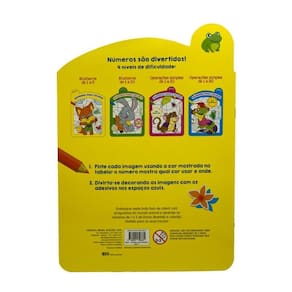 Números são divertidos! 1. Pinte cada imagem usando a cor mostrada na tabela: o número mostra qual cor usar e onde. 2. Divirta-se decorando as imagens com os adesivos nos espaços azuis. Embarque neste lindo livro de colorir com amiguinhos do mundo animal e aprenda os números de 1 a 5 de forma divertida e colorida. Perfeito para os anos iniciais!